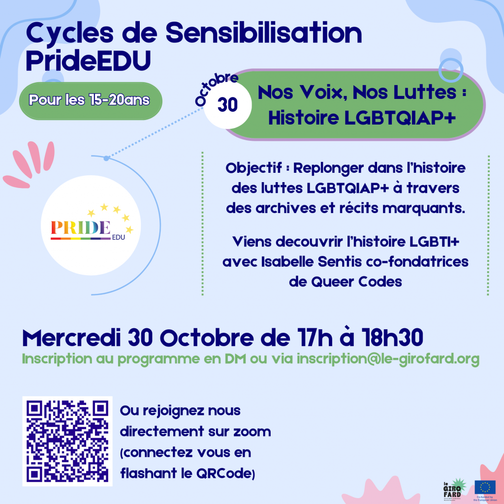 Le Girofard vous propose une série de formations en distanciel visant à explorer les identités, l’histoire et la culture LGBTQIAP+ !