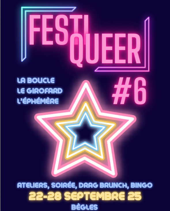 Pour finir le mois, le Festiqueer, qui a eu lieu à la Boucle à Bègles, a rassemblé la communauté autour d’une semaine d’événements festifs et engagés. Drag brunch, scène ouverte, spectacles, ateliers, tatouage, DJ sets et bien plus encore ont rythmé ces journées placées sous le signe de la fête, de la diversité et de la visibilité queer.