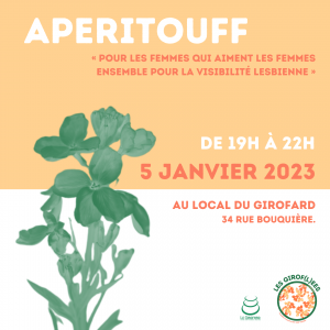 L’aperitouff fait son grand retour avec le groupe Girof(l)ées le 5 janvier à partir de 19h. Le principe est simple : un espace de partages entre personnes s’identifiant comme